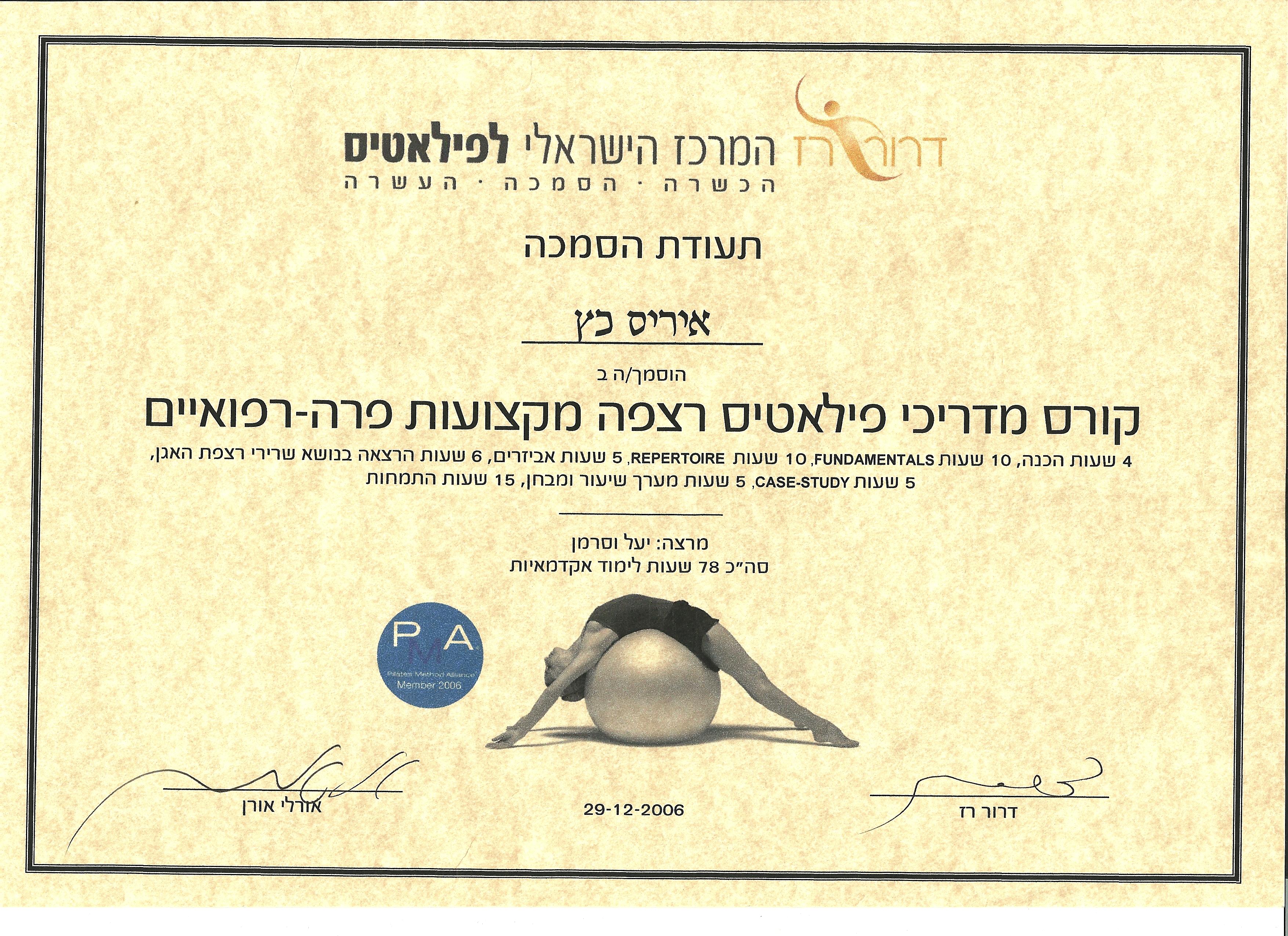 - מוסמכת כ מדריכת פילאטיס רצפה