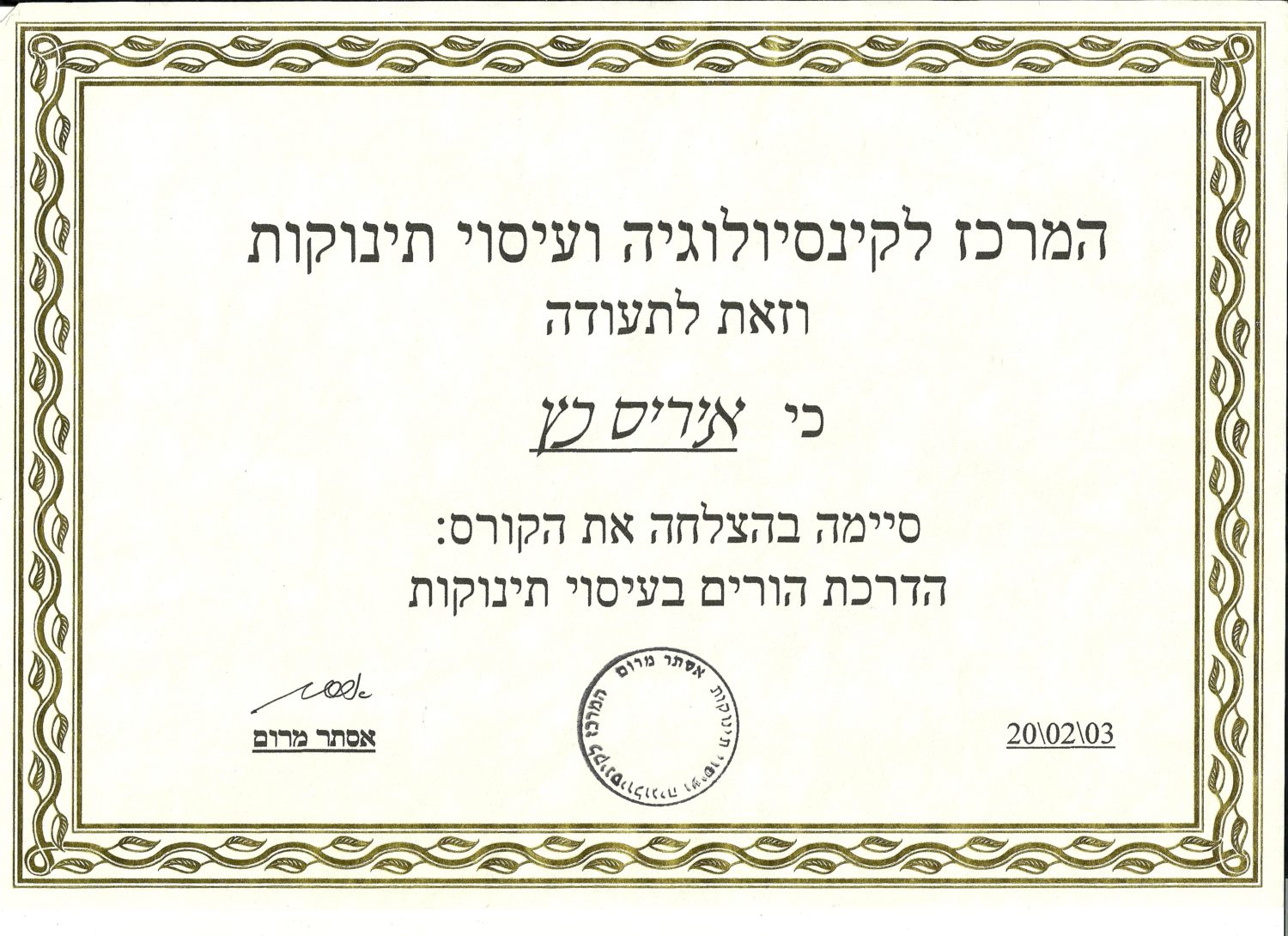 - בוגרת הקורס להתפתחות תקינה וחריגה