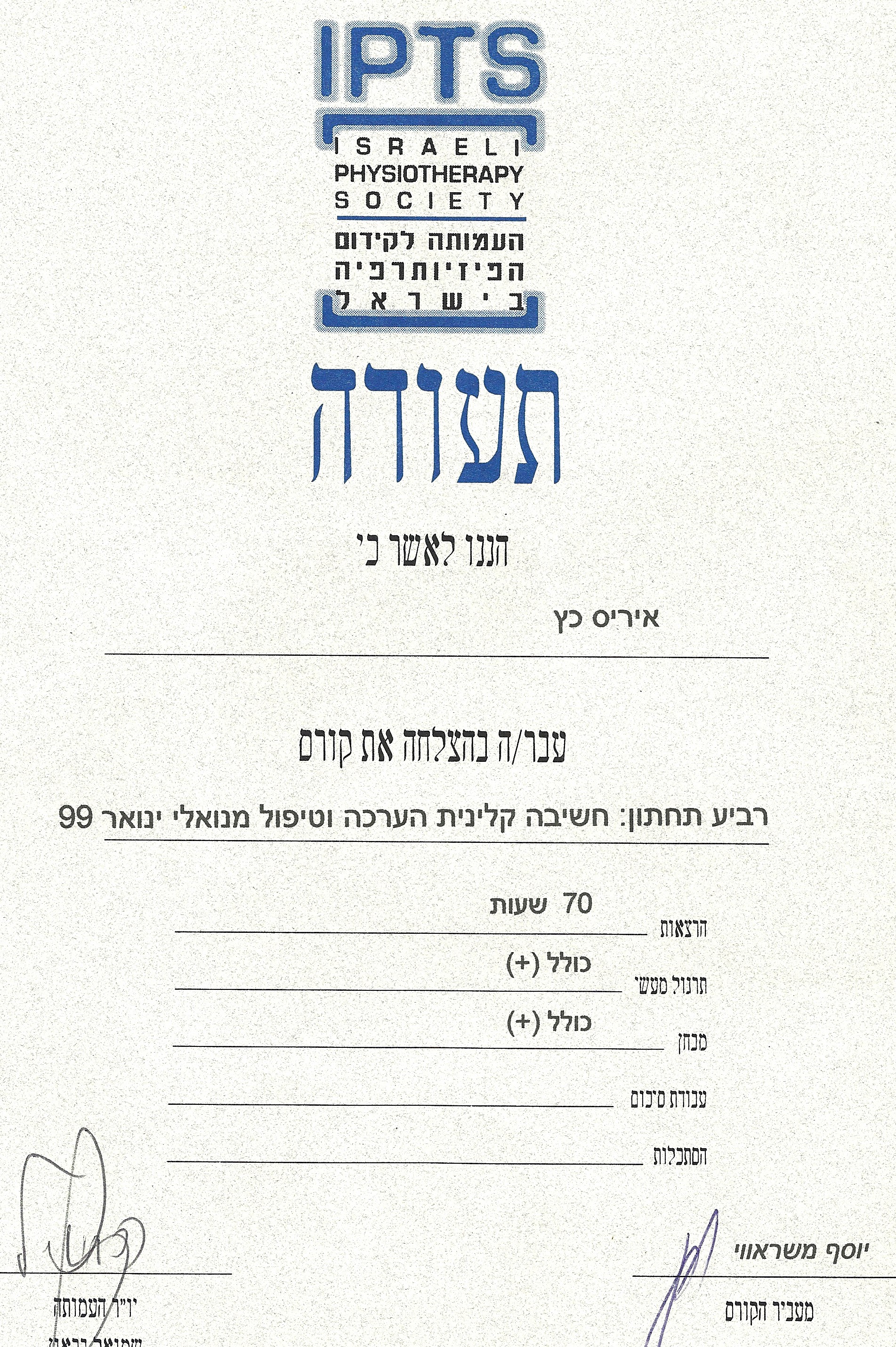 - בוגרת הקורס לחשיבה קלינית הערכה וטיפול ידני